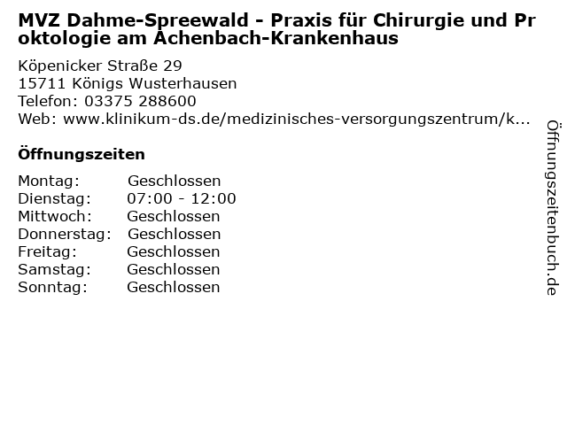 Branchen & Suchbegriffe zu MVZ Dahme-Spreewald - Praxis für Chirurgie und Proktologie am Achenbach-Krankenhaus:achenbach, chirurgie, krankenhaus, mvz, praxis, proktologie, spreewald |