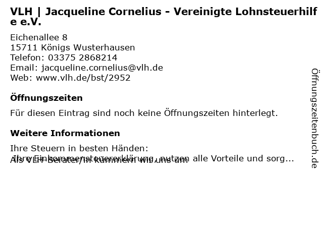 | VLH | Jacqueline Cornelius - Vereinigte Lohnsteuerhilfe e.V. anrufen | |