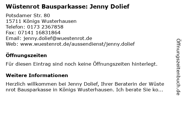 | Wüstenrot Bausparkasse: Jenny Dolief anrufen | |
