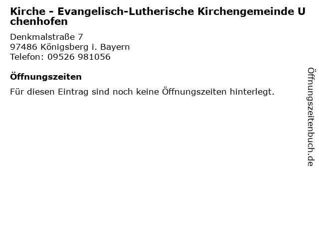 Branchen & Suchbegriffe zu Kirche - Evangelisch-Lutherische Kirchengemeinde Uchenhofen:evangelisch, kirche, kirchengemeinde, lutherische, uchenhofen |