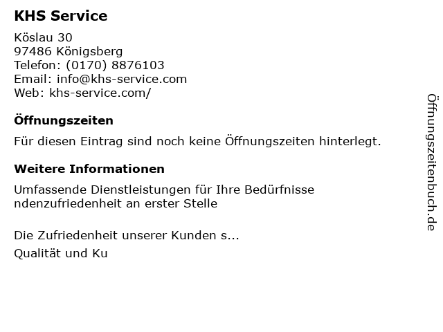 | Öffnungszeiten KHS Service in Königsberg anzeigen | |