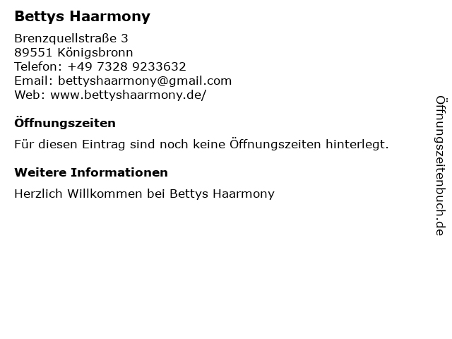 | Öffnungszeiten Bettys Haarmony in Königsbronn anzeigen | |