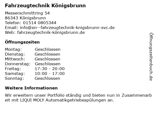 Branchen & Suchbegriffe zu Fahrzeugtechnik Königsbrunn:fahrzeugtechnik, geschäft für autoreifen, geschäft für autoteile, getriebeshop, ölwechselstation |