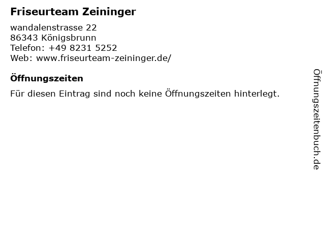 | Öffnungszeiten Friseurteam Zeininger in Königsbrunn anzeigen | |