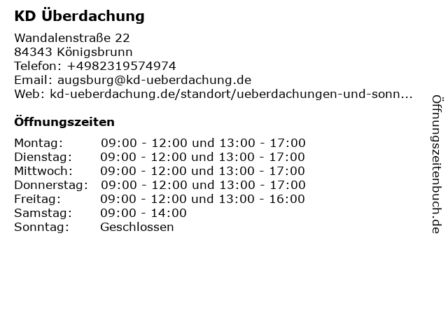 | Öffnungszeiten KD Überdachung in Königsbrunn anzeigen | |