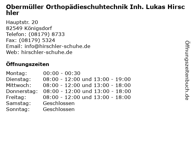 Branchen & Suchbegriffe zu Obermüller Orthopädieschuhtechnik Inh. Lukas Hirschler:hirschler, lukas, obermüller, orthopädieschuhtechnik |