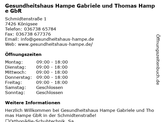 Branchen & Suchbegriffe zu Gesundheitshaus Hampe Gabriele und Thomas Hampe GbR:gabriele, gbr, gesundheitshaus, hampe, thomas |