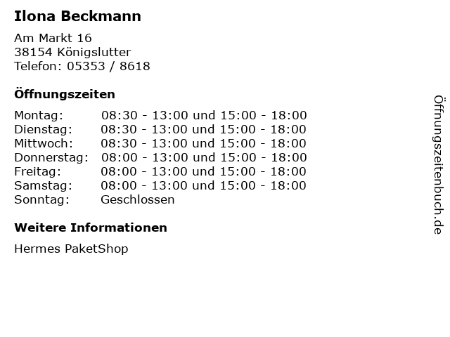 | Öffnungszeiten Ilona Beckmann in Königslutter anzeigen | |