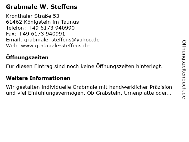 Branchen & Suchbegriffe zu Grabmale W. Steffens:aluguß, ausstellung, beratung, bronze, edelstahl, familienruhestätte, grabgestaltung, grabmale, grabpflege, grabschmuck, grabstein, grabsteine kaufen, handarbeit, individuelle grabmale, königstein-mammolshain, naturstein, qualität, steffens, steinmetz, tradition, urnenplatte, w. |