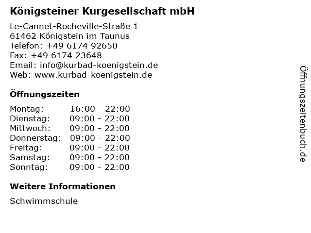 5 Königsteiner Akademie Gesellschaft für persönliche Weiterbildung mbH (Entfernung: 0,75 km) Friedrich-Ebert-Str. 1, 61462 Königstein 6 |