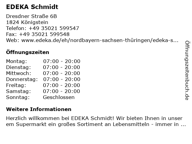 | Adresse EDEKA Schmidt in Königstein anzeigen |