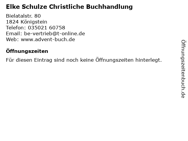 | Elke Schulze Christliche Buchhandlung anrufen | |