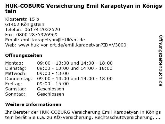 Branchen & Suchbegriffe zu HUK-COBURG Versicherung Emil Karapetyan in Königstein:altersvorsorge, autoversicherung, berufsunfähigkeitsversicherung, coburg, emil, gebäude- und hausratsversicherung, huk, karapetyan, kfz-versicherung (motorrad), tierversicherung, versicherung, zahnmedizinische versicherung |