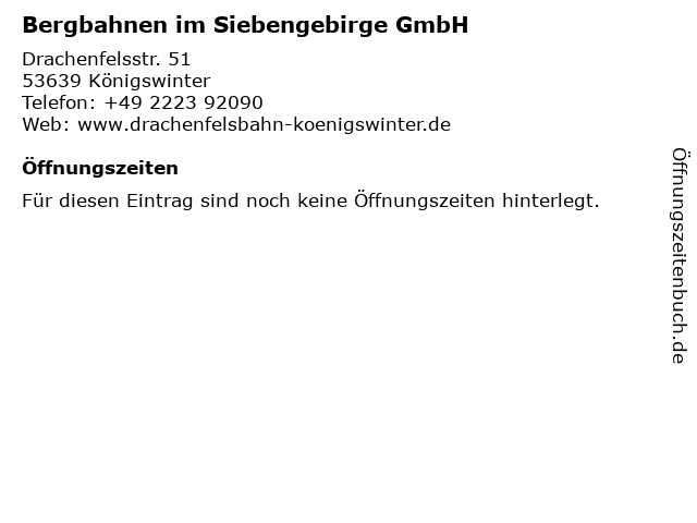 | Bergbahnen im Siebengebirge GmbH anrufen | |