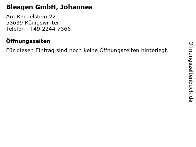 | Öffnungszeiten Blesgen GmbH, Johannes in Königswinter anzeigen | |