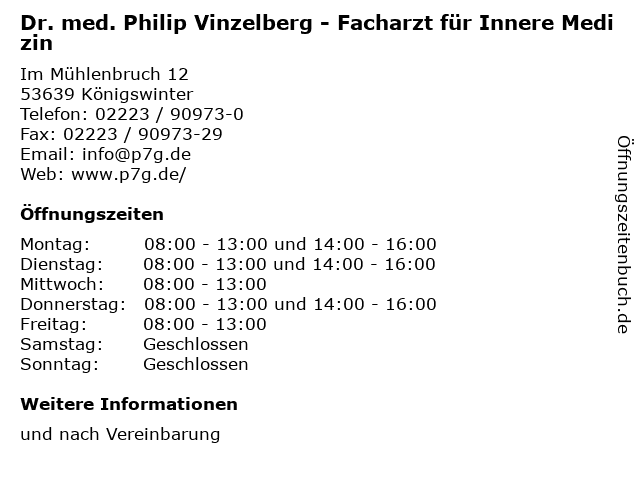 | Montag | 08:00-13:00 und 14:00-16:00 |