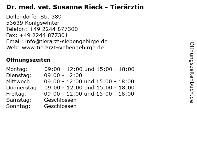 Branchen & Suchbegriffe zu Dr. med. vet. Susanne Rieck - Tierärztin:dr., haustierarzt, impfungen, kastrationen, med., rieck, röntgen, susanne, tierarzt, tierärzte, tierärztin, vet., wundversorgung |