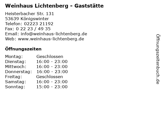 Branchen & Suchbegriffe zu Weinhaus Lichtenberg - Gaststätte:essen, gaststätte, getränke, speisen, weine, weinhaus, weinstube |