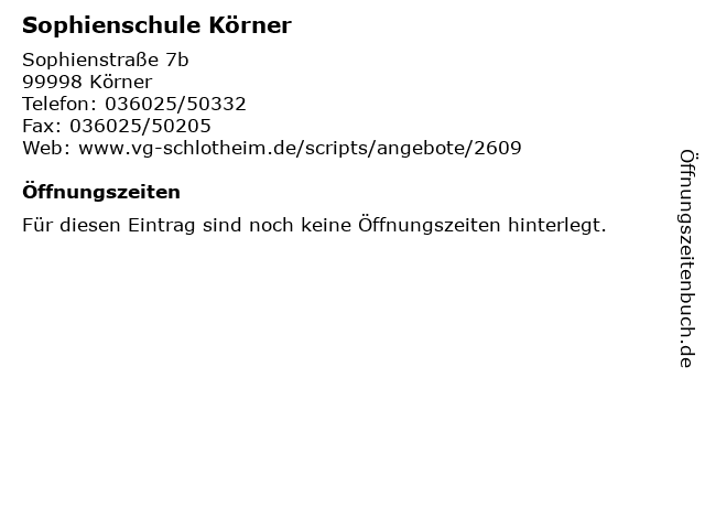 | Öffnungszeiten Sophienschule Körner in Körner anzeigen | |