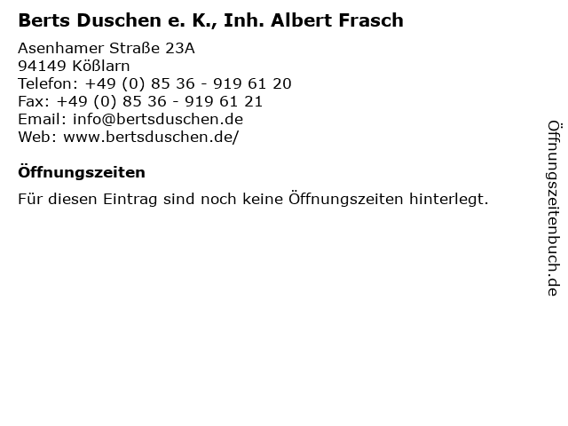 | Berts Duschen e. K., Inh. Albert Frasch anrufen | |