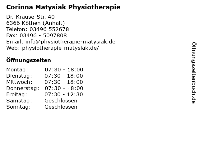 Branchen & Suchbegriffe zu Corinna Matysiak Physiotherapie:corinna, elektrotherapie, krankengymnastik, massage, matysiak, physiotherapie, wärmetherapie |
