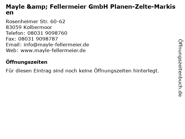 | Mayle & Fellermeier GmbH Planen-Zelte-Markisen anrufen | |