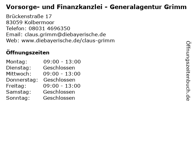 1 Giacomo Anzenberger Generalagentur für Versicherungen (Entfernung: 0,52 km) Schuhmannstr. 2, 83059 Kolbermoor 4 Marion Protzek Allianz Generalagentur Versicherungsagentur (Entfernung: 4,45 km) Münchener Straße 49a, 83022 Rosenheim 5 Generalagentur Oleg Wolf - Generalagentur der Mannheimer Versicherung AG (Entfernung: 4,93 km) Gillitzerstr. 14, 83022 Rosenheim 6 |