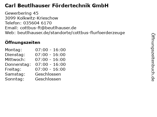 1 Kfz & Fördertechnik Siegbert Schulz Kfz-Werkstatt (Entfernung: 5,48 km) Goethering 13, 03099 Kolkwitz 4 Carl-Thiem-Klinikum - Bereitschaftspraxis Kinder (Entfernung: 11,12 km) Thiemstraße 111, 03048 Cottbus 5 Medizinische Schule am Carl-Thiem-Klinikum - Fachbereich Hebammenausbildung (Entfernung: 11,18 km) Welzower Straße 27, 03048 Cottbus 6 |