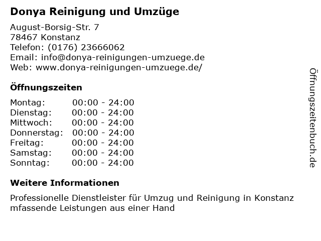 | Öffnungszeiten Donya Reinigung und Umzüge in Konstanz anzeigen | |