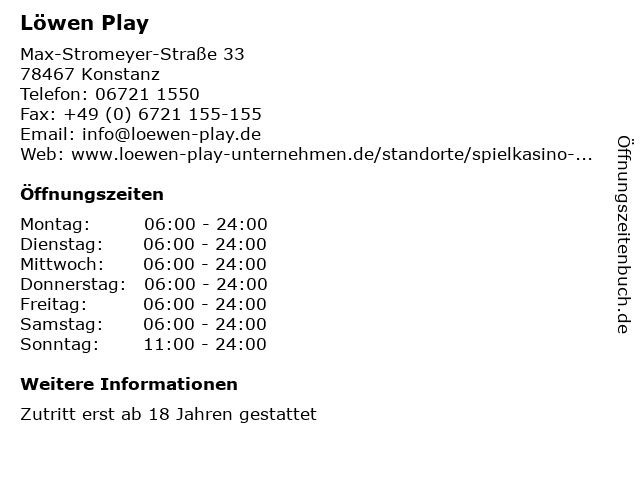 | Öffnungszeiten Löwen Play in Konstanz anzeigen | |
