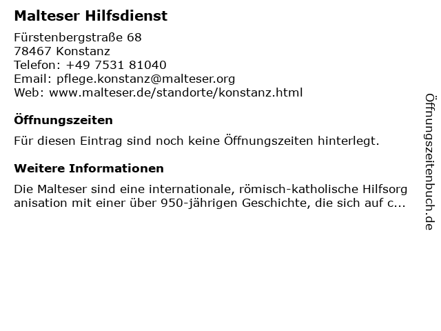 Öffnungszeiten Malteser Hilfsdienst in Konstanz anzeigen | |