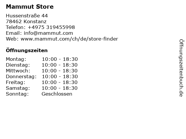 | Öffnungszeiten Mammut Store in Konstanz anzeigen | |