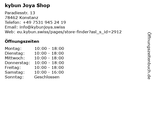 | Öffnungszeiten kybun Joya Shop in Konstanz anzeigen | |