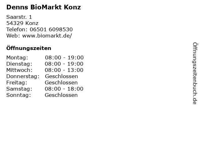 | Öffnungszeiten Denns BioMarkt Konz in Konz anzeigen | |