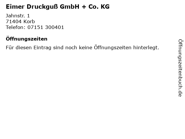 | Öffnungszeiten Eimer Druckguß GmbH + Co. KG in Korb anzeigen | |