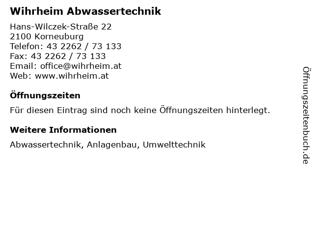 | Öffnungszeiten Wihrheim Abwassertechnik in Korneuburg anzeigen | |