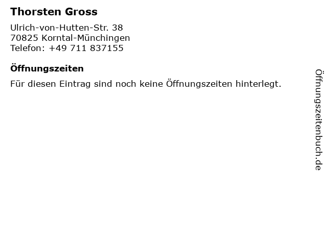 | Öffnungszeiten Thorsten Gross in Korntal-Münchingen anzeigen | |