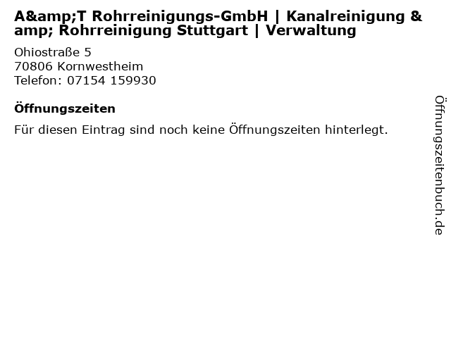 | A&T Rohrreinigungs-GmbH | Kanalreinigung & Rohrreinigung Stuttgart | Verwaltung anrufen | |