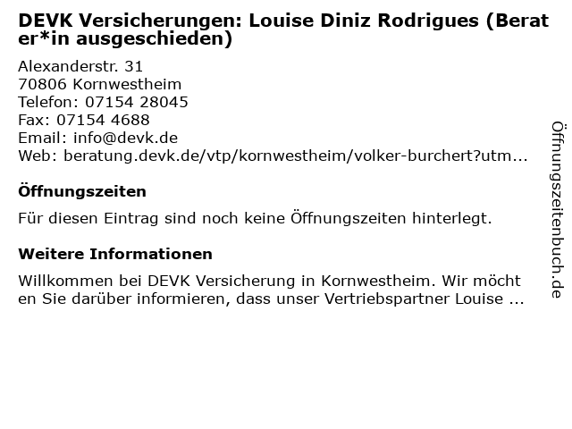 | DEVK Versicherungen: Louise Diniz Rodrigues (Berater*in ausgeschieden) anrufen | |