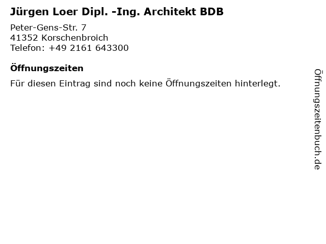 | Jürgen Loer Dipl. -Ing. Architekt BDB anrufen | |