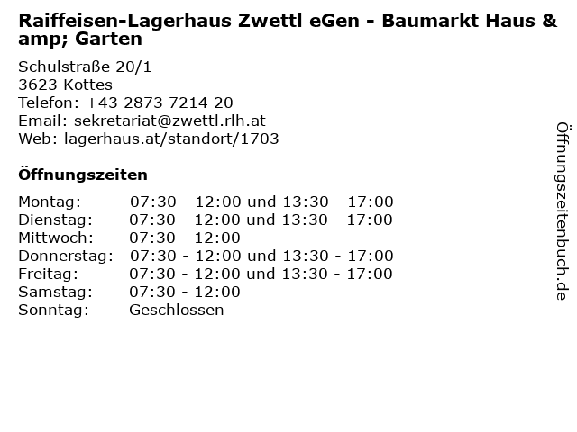 1 Raiffeisen-Lagerhaus Zwettl eGen - Baumarkt Haus & Garten (Entfernung: 11,05 km) Lichtenau 63, 3522 Lichtenau im Waldviertel 6 Raiffeisen-Lagerhaus Zwettl eGen - Genol Tankstelle (Entfernung: 0,09 km) Schulstraße 20/1, 3623 Kottes |