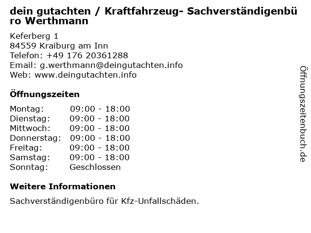 2 Dein Lebenscoaching - Deine Zeit ist jetzt! Inh. Susanne und Andreas Heiduck (Entfernung: 11,05 km) Mößlinger Str. 61, 84453 Mühldorf 5 Altlasten Geotechnik Gutachten Ulrich Semmler Geologie (Entfernung: 18,22 km) Dorfstr. 19, 83547 Babensham 6 Wolfgang Wild Immobilien- und Sachverständigenbüro (Entfernung: 18,54 km) Josefsburggasse 14, 84503 Altötting |