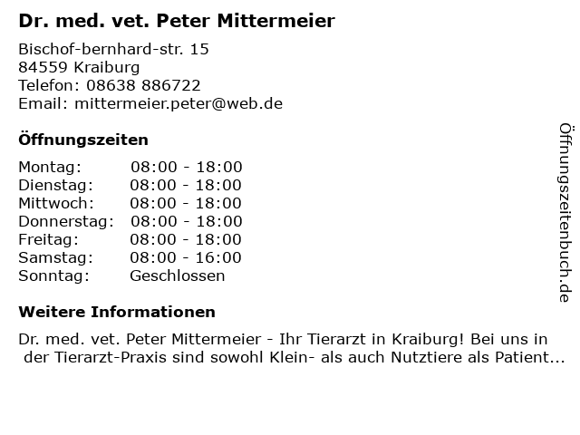 Branchen & Suchbegriffe zu Dr. med. vet. Peter Mittermeier:dr., med., mittermeier, peter, vet. |