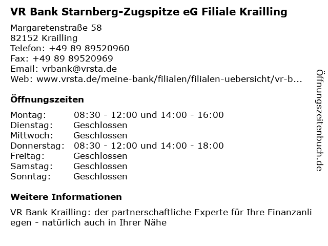 1 VR Bank Starnberg-Herrsching-Landsberg eG - (Geldautomat Krailling) (Entfernung: 0,00 km) Margaretenstrasse 58, 82152 Krailling 2 Geldautomat VR Bank Starnberg-Zugspitze eG (Entfernung: 0,02 km) Margaretenstraße 58, 82152 Krailling 3 VR Bank Starnberg-Herrsching-Landsberg eG - VR Bank Stockdorf (Entfernung: 0,74 km) Baierplatz 7, 82131 Stockdorf 4 VR Bank Starnberg-Herrsching-Landsberg eG - (Geldautomat Stockdorf ) (Entfernung: 0,74 km) Baierplatz 7, 82131 Stockdorf 5 VR Bank Starnberg-Herrsching-Landsberg eG - (Geldautomat Gauting) (Entfernung: 3,85 km) Bahnhofplatz 5, 82131 Gauting 6 VR Bank Starnberg-Herrsching-Landsberg eG - (Geldautomat Gilching) (Entfernung: 9,08 km) Sonnenstraße 53, 82205 Gilching |