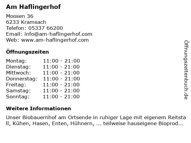 | Öffnungszeiten Am Haflingerhof in Kramsach anzeigen | |