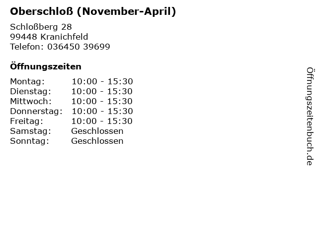 Branchen & Suchbegriffe zu Oberschloß (November-April):april, november, oberschloß, sehenswürdigkeit, thüringen, thüringen-card |