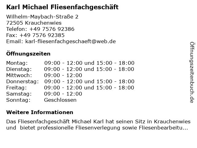 | Freitag | 09:00-12:00 und 15:00-18:00 |