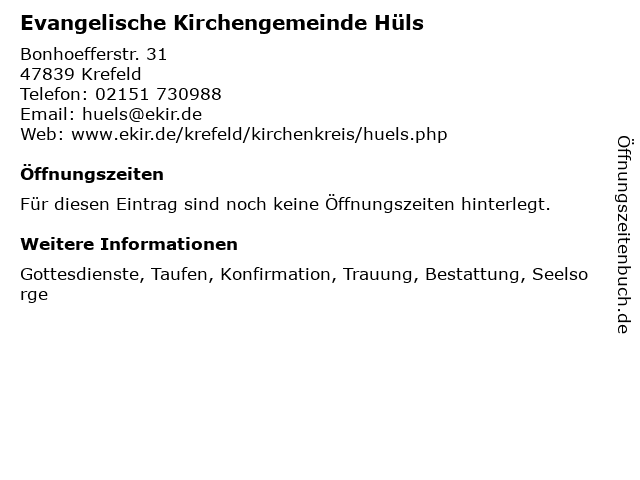 | Evangelische Kirchengemeinde Hüls anrufen | |