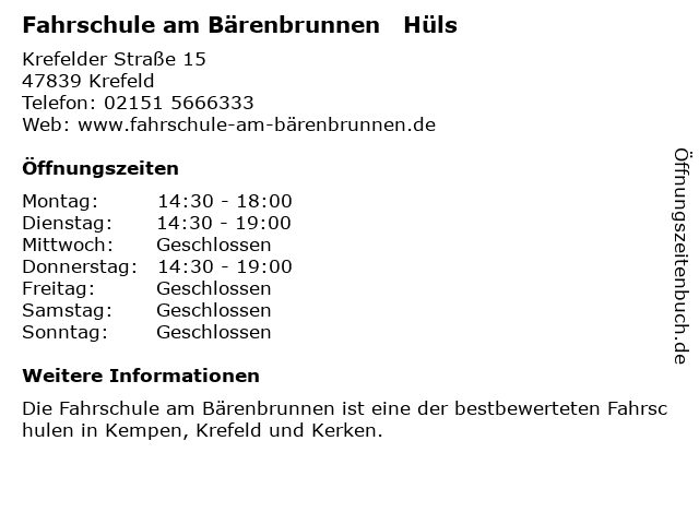 Branchen & Suchbegriffe zu Fahrschule am Bärenbrunnen Hüls:bärenbrunnen, fahrschule, hüls, schule für erwachsenenbildung |