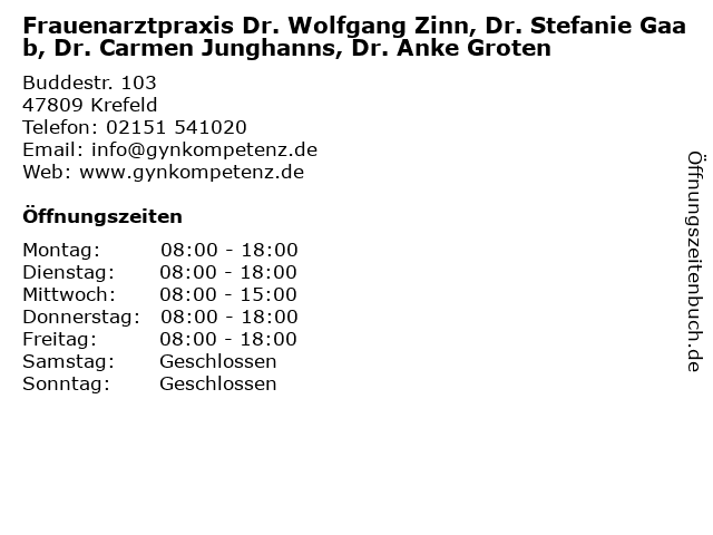 1 Drs. med. Wolfgang Zinn & Elke Diederich - Fachärzte für Gynäkologie und Geburtshilfe (Entfernung: 0,00 km) Buddestraße 103, 47809 Krefeld 2 Carmen Schmidt Fachärztin f.Psychosomat.Med. und Psychotherapie (Entfernung: 1,17 km) Heckschenstr. 81, 47809 Krefeld 6 |
